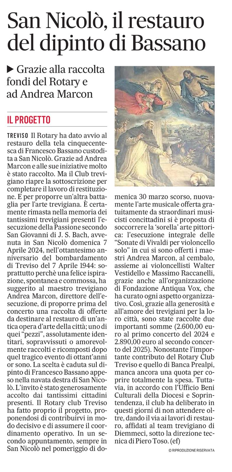 S. Nicolò Il restauro del dipinto del Bassano