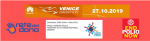 Il 27 ottobre 2019 il Rotary sarà presente alla Venice Marathon per la campagna End Polio Now. Anche quest’anno il Distretto Rotary 2060 e i Club Rotary saranno presenti alla 34° edizione delle Venice Marathon, per scrivere la parola “fine” alla Polio e sostenere la Rotary Foundation nella sua trentennale campagna per l’eradicazione. L’obiettivo di raccolta fondi del 2019 è di € 40.000, da raccogliere con la Rete del Dono sostenendo i Runner del Rotary che parteciperanno alla Maratona. Le iscrizioni disponibili per la 10 Km si stanno esaurendo, poiché il nostro Distretto dispone solo di 100 posti, mentre le iscrizioni per la 42 Km sono ancora disponibili. Le donazioni nella Rete del Dono sono aperte e potranno essere effettuate fino al 31 gennaio 2020. Le iscrizioni per entrambe le competizioni devono essere fatte compilando l’allegato modulo in pdf (compilabile dagli interessati) e va inviato con mail a Luca Baldan (luca@abgassociati.it– tel.329.8614498) e a Gianluca Carobene (carobene@carobene.com– tel. 347.2496467)